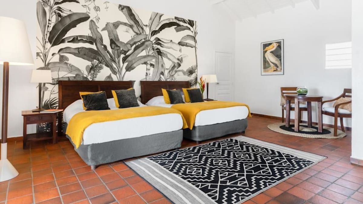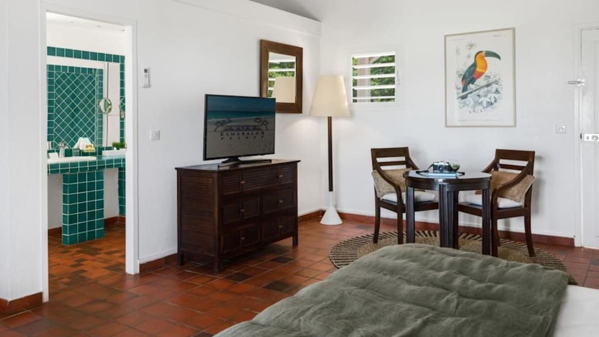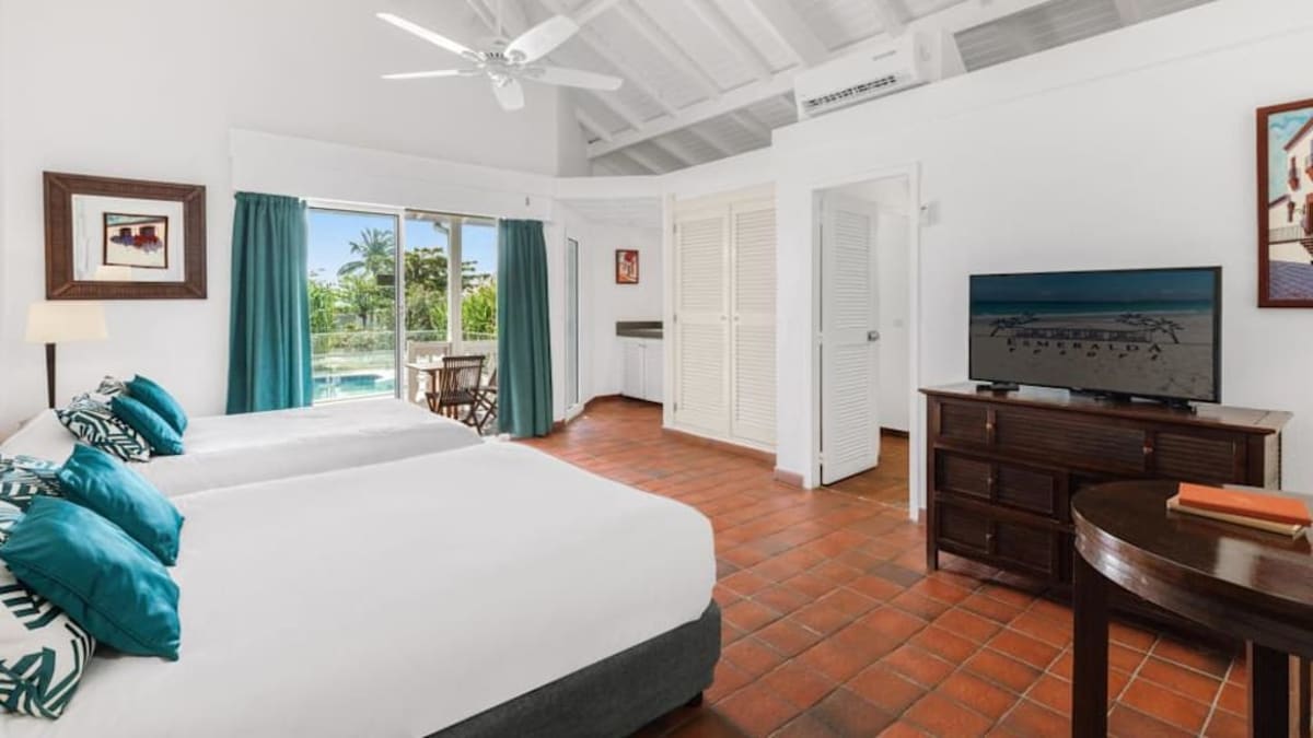 Esmeralda Resort is a colonial-style property located on the French side of St. Martin. Nestled on the white-sand shores of Orient Beach, the resort offers several pools throughout the grounds, a pool bar and beachfront bar, and complimentary continental breakfast. Guests can enjoy water sports like water skiing ($), windsurfing ($) and snorkelling ($) or venture off the resort grounds and explore the local casino ($) and nightclub ($). The two on-site restaurants ($) offer French and international cuisine. The resort’s spacious accommodations come with convenient amenities.