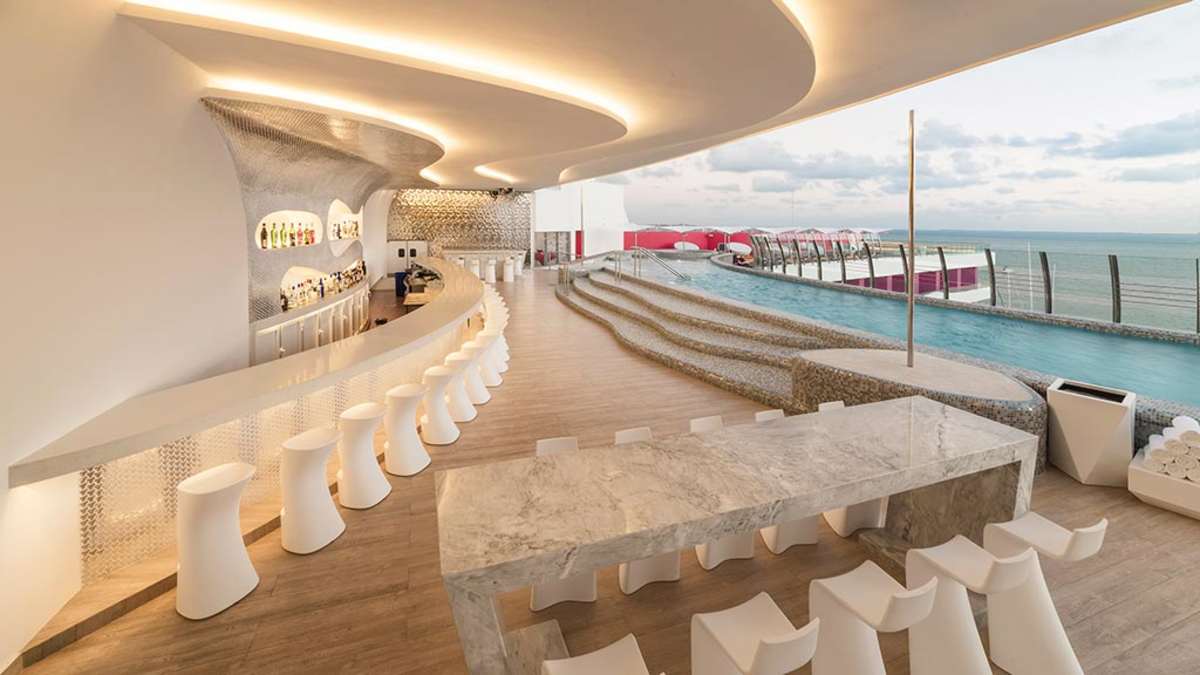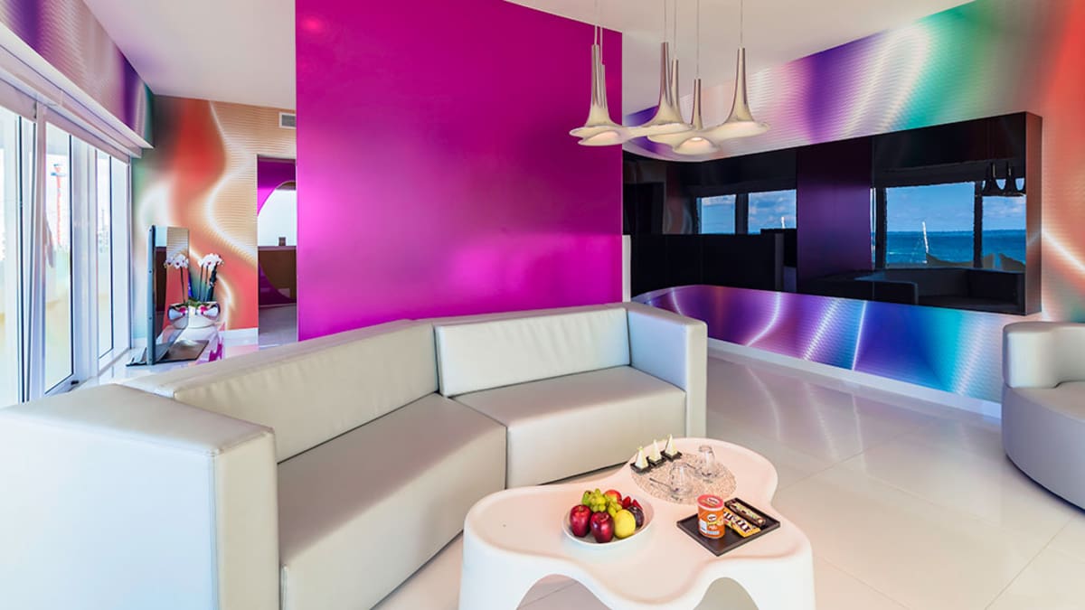 The Tower by Temptation Cancun Resort offers a free-spirited atmosphere perfect for tropical getaways. The topless-optional resort features themed pools like the Sexy Pool where guest DJs perform and the Quiet Pool where guests can unwind, plus both pools offer attentive wait service. The resort has gourmet dining options, including SHE, the resort’s signature restaurant, ideal for couples with its aphrodisiac menu. Evening entertainment includes sensual theme parties and lively bars, such as the rooftop SKY 3.5 lounge offering signature cocktails and stunning Cancun skyline views. The lavish oceanview suites are spacious, comfortable and offer guests adult-friendly amenities.